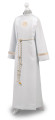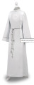Albę wykonano z białego stretchu - materiału łatwego w utrzymaniu czystości oraz prasowaniu. Odpowiednie dodatki są przemyślane i podkreślają charakter całości. Sznur liturgiczny, taśma ze zdobieniami na rękawach oraz emblemat IHS idealnie komponują się ze strojem i estetycznie ozdabiają.