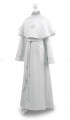 Alba posiada elementy ozdobne, wykonane z gładkiej, złotej tasiemki. Wykończenie tego rodzaju znajduje się na kołnierzu oraz na rękawach. Biało-szłoty sznur liturgiczny doskonale uzupełnia strój i pasuje do całości. Emblemat IHS również ma kolor złoty.