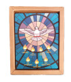 Obrazek srebrny z wizerunkiem Św. Rodziny, prostokątny na brązowym drewnie - GRAWER GRATIS !