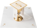Lniany komplet kielichowy z motywem złotego florystycznego krzyża na okrągłej palce S-5029