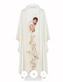 Ornat z haftowanym krzyżem oraz motywami Alfa i Omegi i kłosów w kolorze ecru S-7053