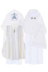 Welon na kielich w kolorze ecru z niebieskim haftem maryjnym