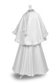 Okrycie komunijne w formie poncza wykonanego z cieplutkiego polaru, z wlotem na rączki, dzięki czemu nie kręci się i zawsze dobrze ogrzewa w chłodne dni. Wykończone dookoła futerkiem, wiązane pod szyją. Rozmiar uniwersalny.