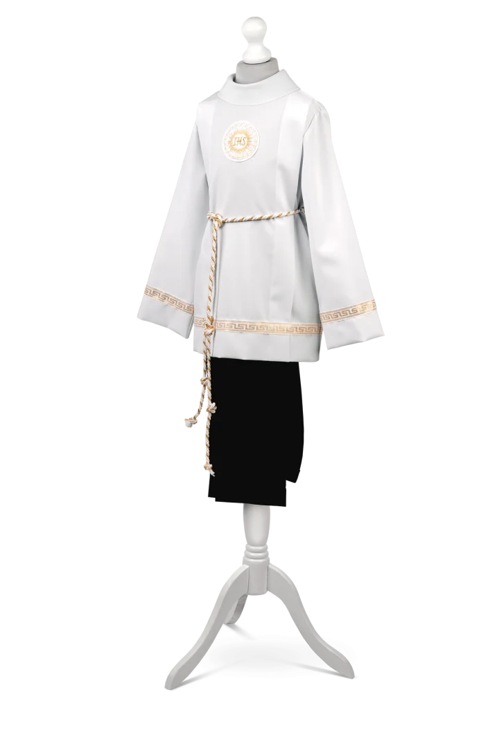 Alba komunijna dla chłopca, krój trójkąt