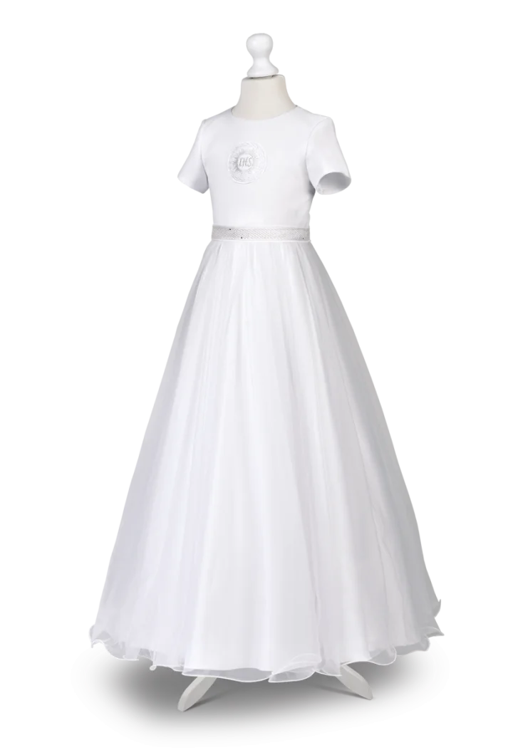 Sukienka Laura 025 to idealny wybór dla dziewczynek, które pragną wyglądać zjawiskowo podczas Pierwszej Komunii.