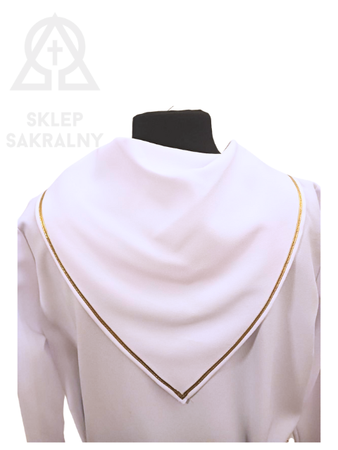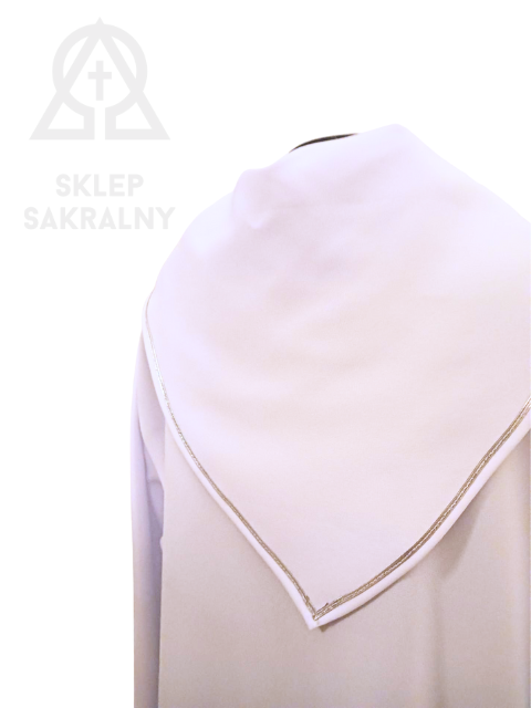 Z tyłu alby kołnierz jest wykończony eleganckim krojem w trójkąt. Istnieje także możliwość wykroju w kwadrat - link do produktu.