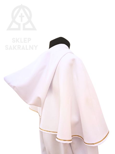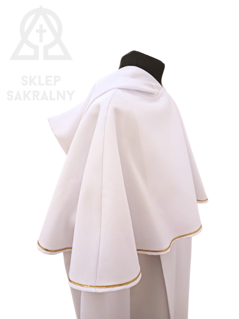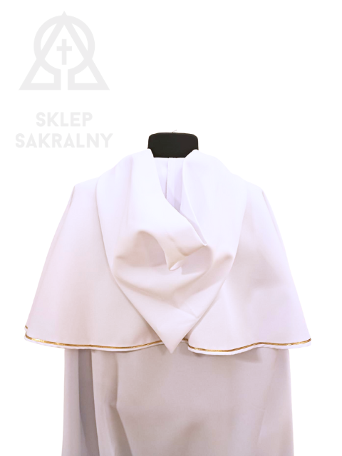 Alba komunijna z kapturem doskonale podkreśla chłopięcy krój stroju. Alba jest wykonana z materiału stretch, najczęściej wykorzystywanego w odzieży liturgicznej.