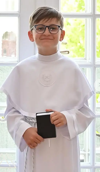 Alba komunijna uniwersalna, pasuje zarówno dla chłopca, jak i dla dziewczynki.