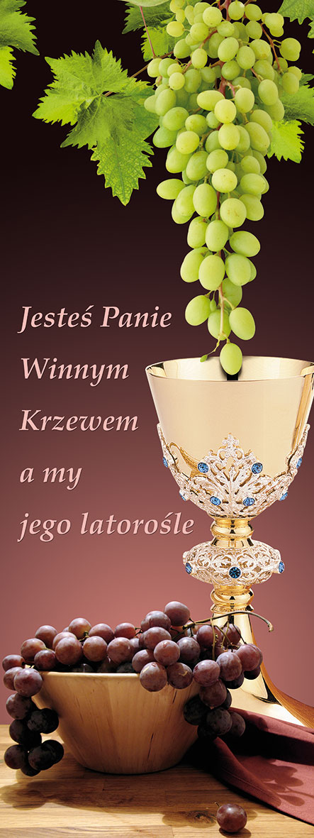 Baner na Boże Ciało "Kto spożywa moje ciało i pije krew" 75x200 cm