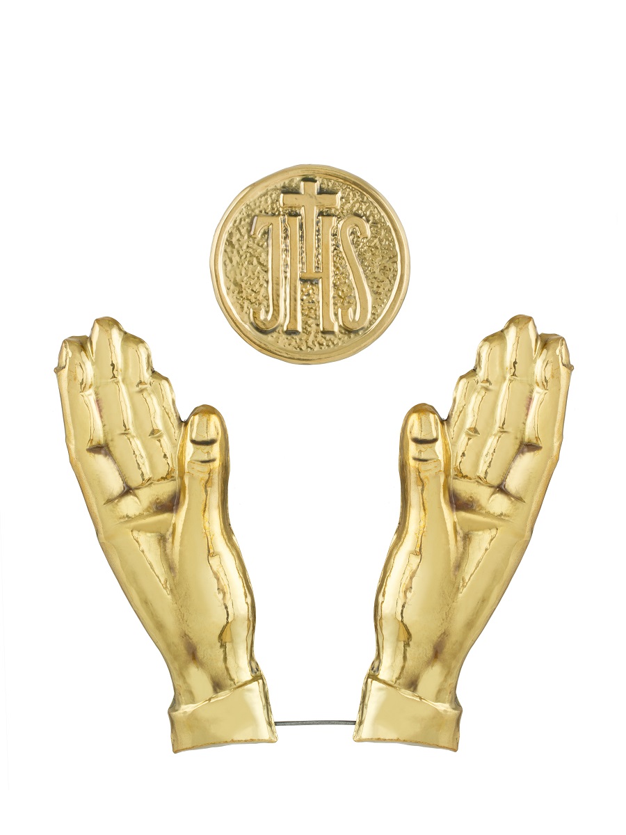 Dłonie i IHS -aplikacja sakralna, ornament na ołtarz lub ambonę