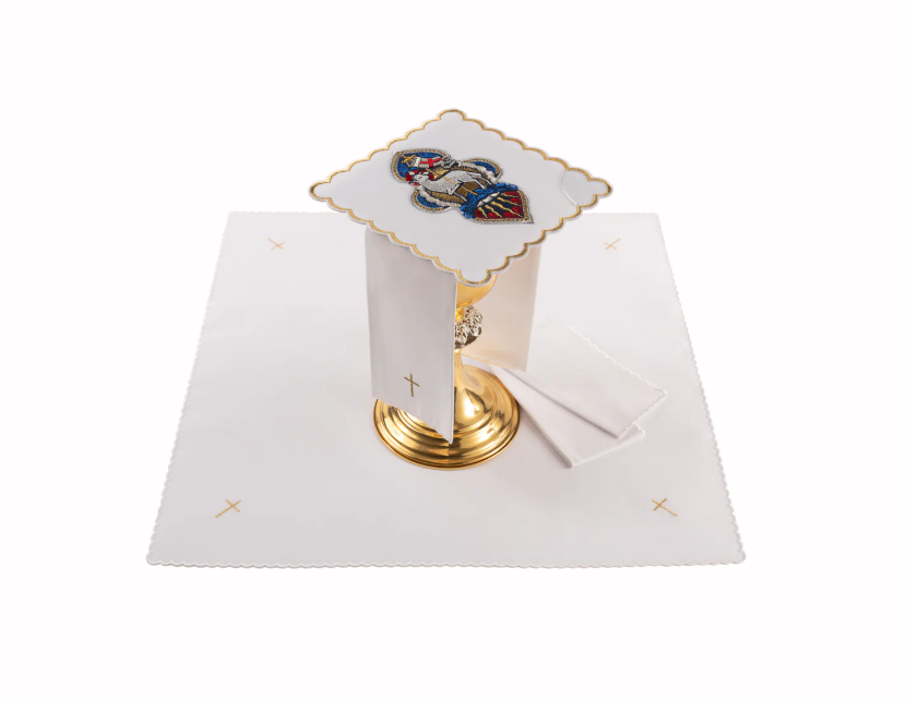 Komplet kielichowy, bielizna kielichowa z motywem maryjnym