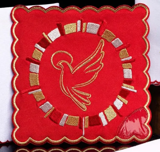Lniany komplet kielichowy z motywem kielicha i hostii S-5027