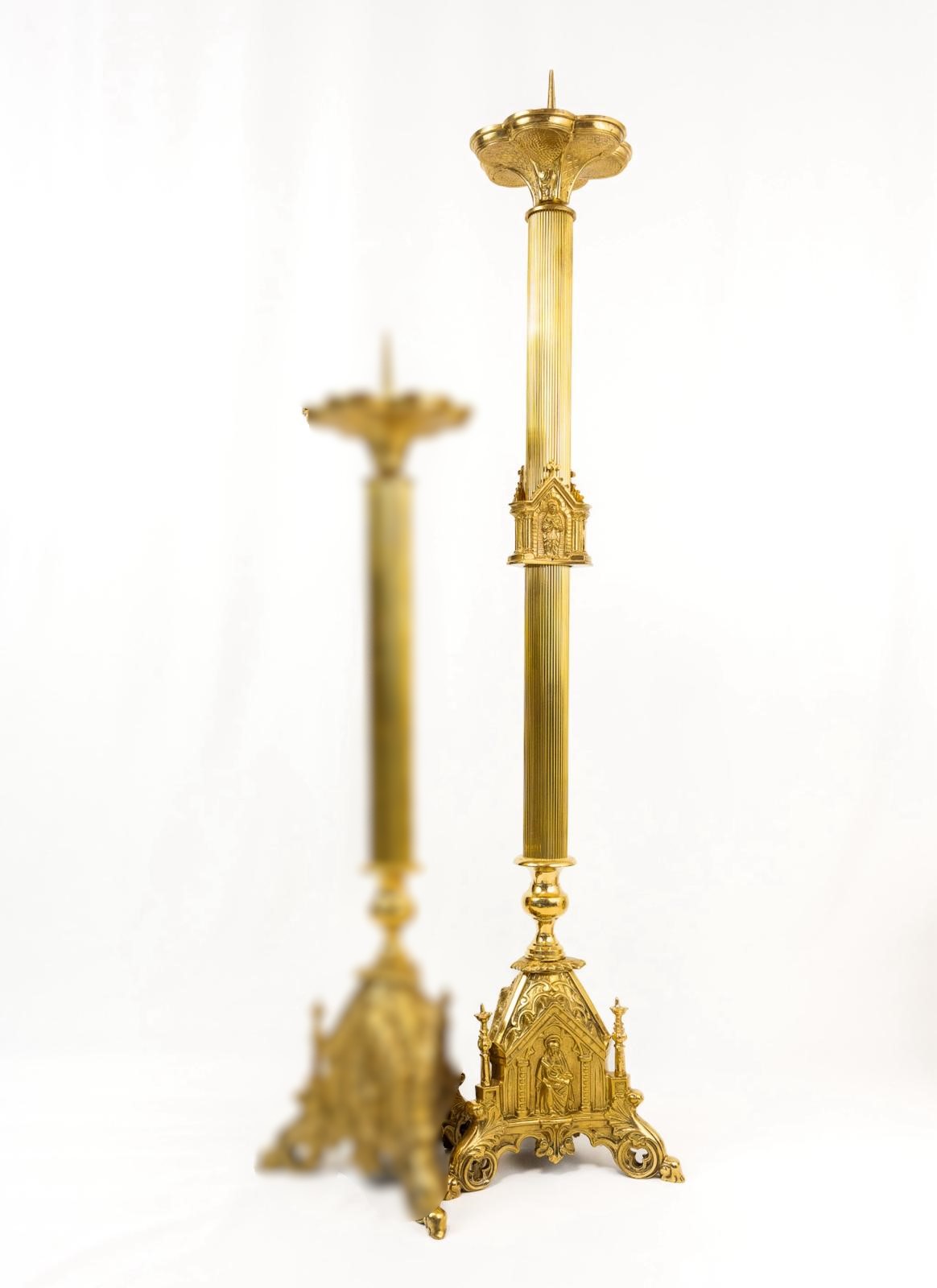 Świecznik ołtarzowy, odlew mosiężny lakierowany