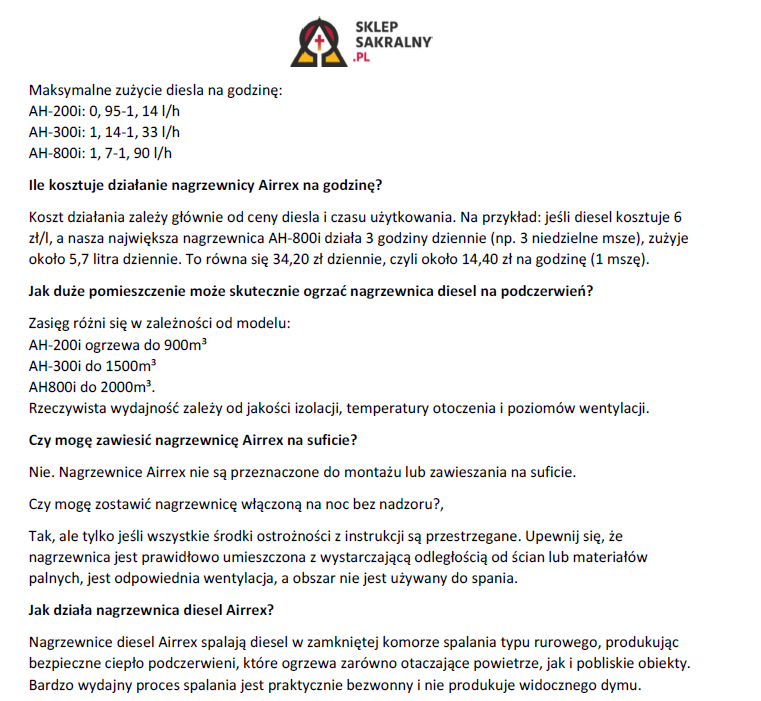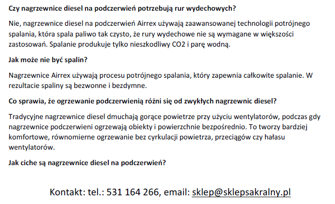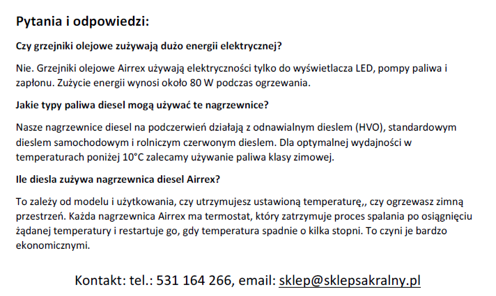 Zachęcamy do zapoznania się ze szczegółową specyfikacją i przeczytania najpopularniejszych pytań i odpowiedzi dotyczących nagrzewnicy.