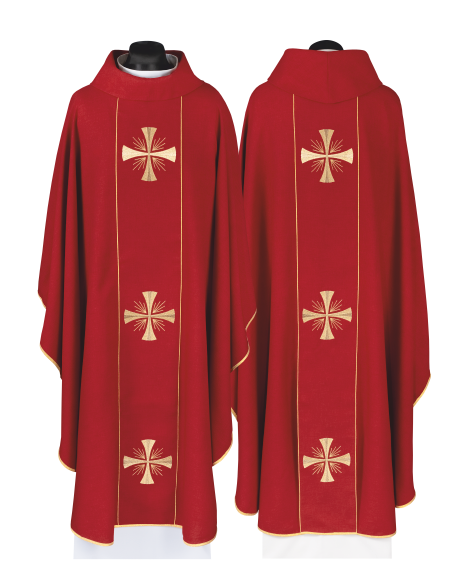 Ornat mszalny z pasem i haftem krzyży - czerwony