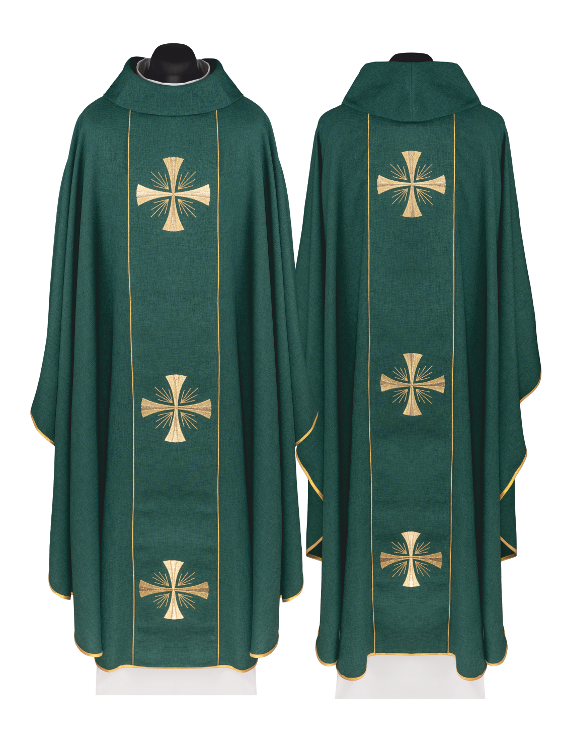 Ornat mszalny z pasem i haftem krzyży - zielony