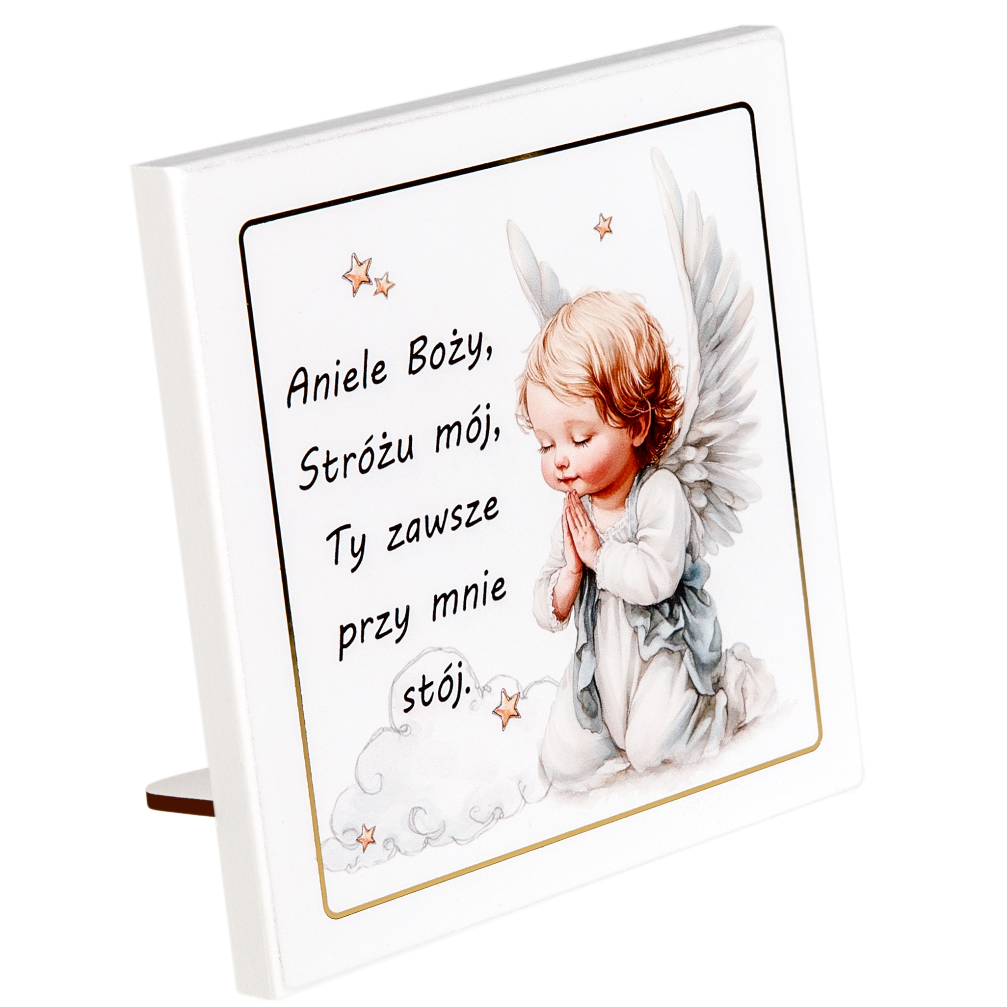 Obrazek Aniołek z latarenką z modlitwą, prostokątny - GRAWER GRATIS !