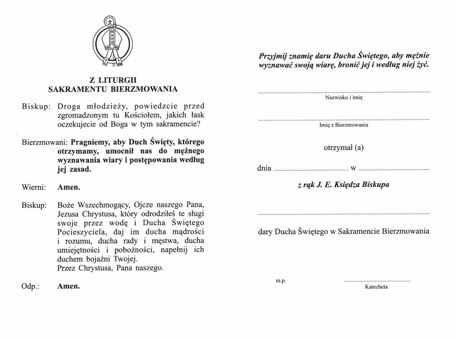 Deklaracja kandydata do przyjęcia Sakramentu Bierzmowania (50szt)