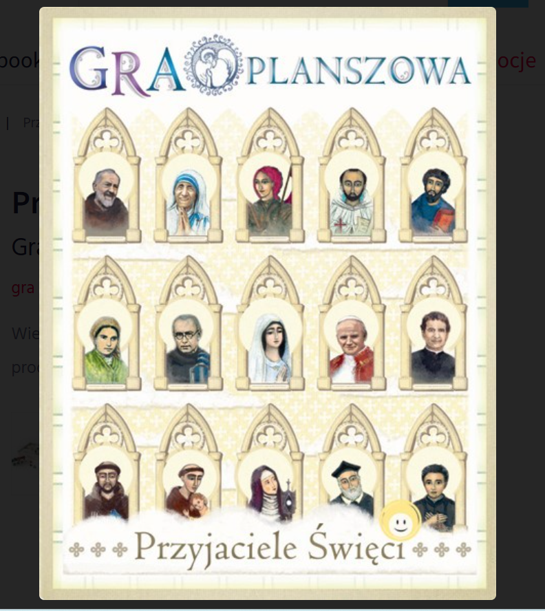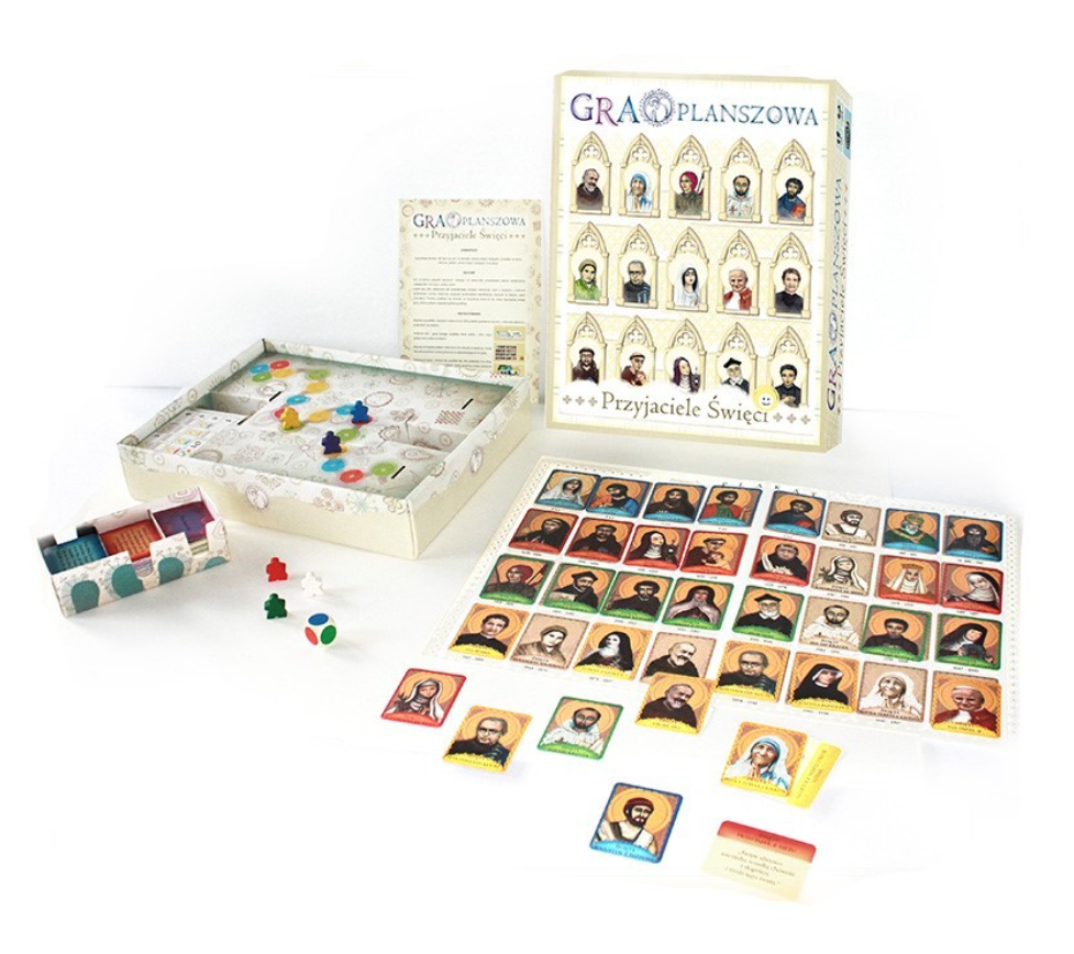 Postaw swój pionek na planszy. Weź plakat, obrazki świętych i pudełko z kartami. Rzuć kostką i ruszaj przed siebie. Czy pozwolisz wyprzedzić się pozostałym graczom? A może zbierzesz największą i najwyżej punktowaną kolekcję wizerunków świętych, a także kart z wydarzeniami z ich życia?