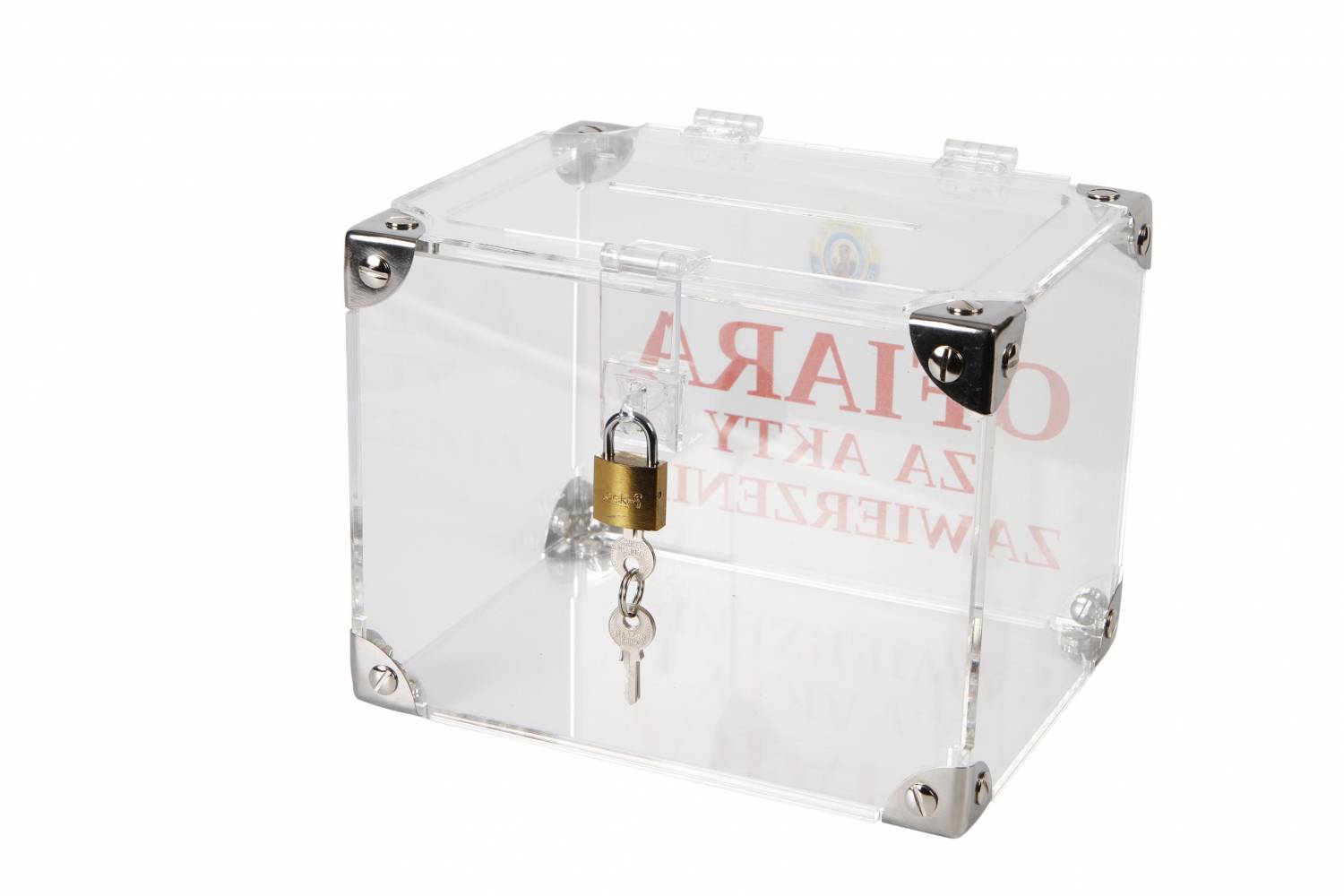 Skarbona na ofiarę prostokątna - plexi zamykana na kłódkeczkę